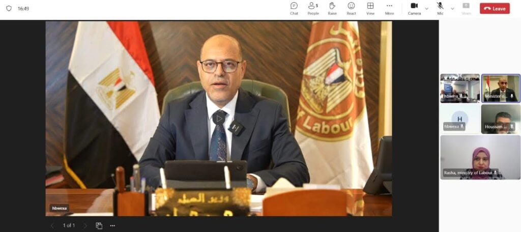 ..وقد حضر فعاليات التوقيع من جانب وزارة العمل عن طريق الفيديو كونفرانس ،رشا عبدالباسط رئيس الإدارة المركزية للعلاقات الدولية ..