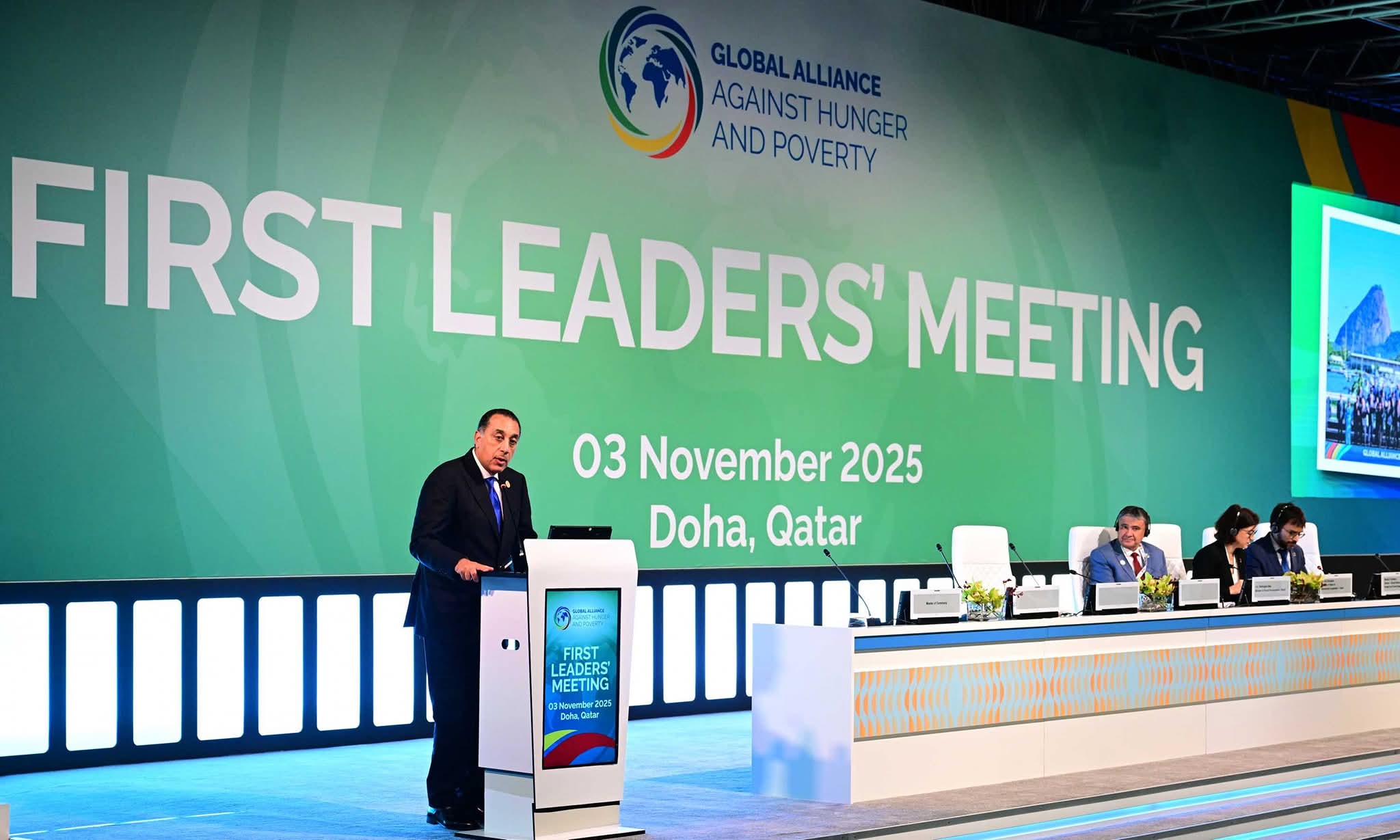 وأعرب رئيس الوزراء، في مُستهل كلمته، عن تقديره البالغ لدولة قطر الشقيقة لاستضافتها هذه القمة المُهمة، ولحفاوة الاستقبال وكرم الضيافة، مُشيدًا بالجهود المُتميزة التي بذلتها الرئاسة المشتركة للبرازيل وإسبانيا في قيادة التحالف العالمي لمكافحة الجوع والفقر.
