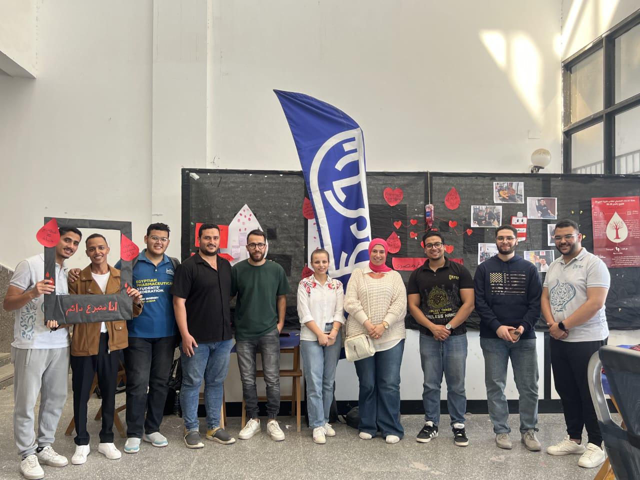 الاتحاد المصري لطلاب الصيدلة يهدون الحياة في حملة التبرع بالدم بجامعة قناة السويس