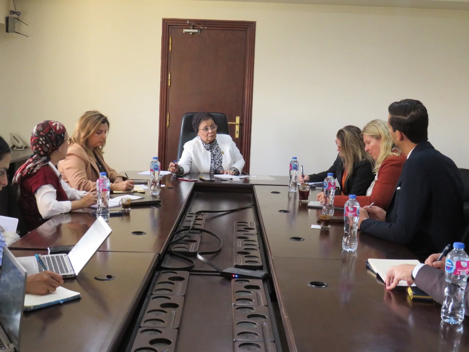 حضر الاجتماع: الدكتورة جيرمين حداد الممثل المساعد لصندوق الأمم المتحدة للسكان، والدكتورة رشا حافظ مديرة برنامج الصحة الإنجابية بالصندوق، وشيشتي ليندو مستشار الشؤون التنموية بالسفارة النرويجية، وكمال نبيل إبراهيم مستشار الشؤون التجارية والاقتصادية، وأوني سيلكوسيت مدير تطوير الأعمال بشركة ليردال، والسيد محمود النجار المدير التنفيذي لشركة Nordic Tech Partners، والدكتورة منى عاشور المساعد التنفيذي لنائب الوزير ومنسقة العلاقات الخارجية.