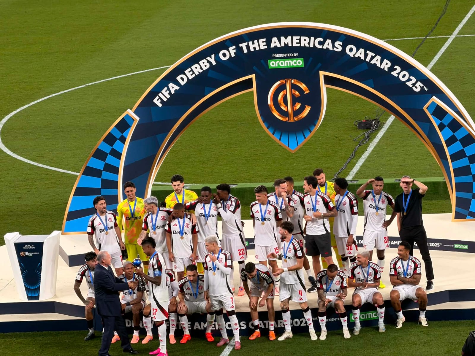 وشهد المباراة الشيخ حمد بن خليفة بن أحمد آل ثاني، وزير الرياضة القطري، إلى جانب عدد من أعضاء مجلس الفيفا الذين شاركوا في مراسم تتويج فلامنجو بطل ديربي الأمريكتين.