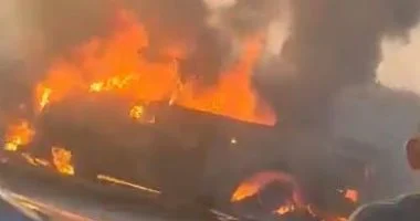 تفحم شخص داخل سيارة اشتعلت بها النيران على طريق بنها