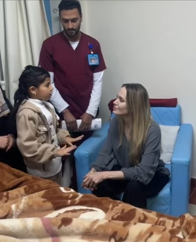 قامت النجمة العالمية أنجلينا جولي، بزيارة إنسانية لمستشفى العريش في شمال سيناء، حيث التقت بعدد من المصابين من قطاع غزة الذين تم نقلهم لتلقي العلاج بعد إصابتهم في الأحداث الأخيرة. وجاءت هذه الزيارة في إطار دعمها المستمر للمجتمعات المتضررة جراء الأزمات الإنسانية والصراعات المستمرة في المنطقة.