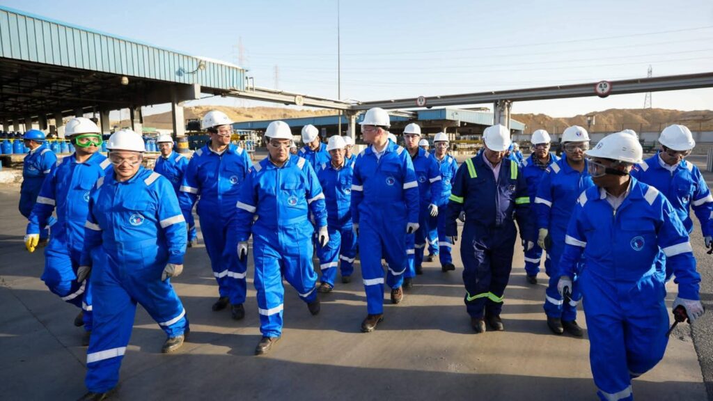 واطلع الوزير على مراحل العمل المختلفة بدءاً من اختبار صلاحية الأسطوانة قبل التعبئة وتجهيزها بوسائل الأمان، و التأكد من الأوزان المعتمدة ، ثم إعادة اختبارها بعد التعبئة لضمان سلامتها قبل التداول ، كما تابع مجريات العمل مع العاملين بمظلات التعبئة، مؤكدا على الدعم الكامل لهم باعتبارهم الثروة الحقيقية وركيزة العملية الإنتاجية مهنئاً إياهم بالشهرالكريم