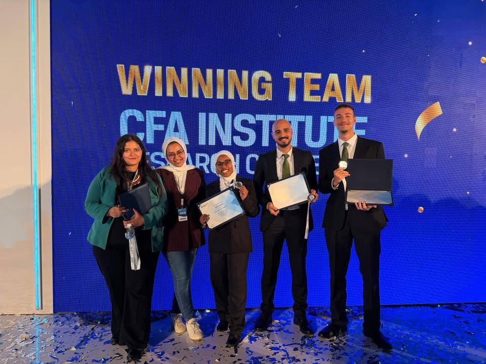 وتُعد CFA Research Challenge مسابقة دولية مرموقة تهدف إلى إتاحة تجربة تعليمية تطبيقية تحاكي واقع العمل في أسواق المال، حيث يُكلَّف المشاركون بتحليل شركة مدرجة في البورصة، وإعداد تقرير بحثي متكامل يشمل تقييم الأداء المالي، وتحليل المخاطر، ودراسة السوق والقطاع، إلى جانب تقديم توصيات استثمارية احترافية أمام لجنة تحكيم تضم نخبة من خبراء الاستثمار وإدارة الأصول ، وتُسهم المسابقة في ربط الدراسة الأكاديمية بالتطبيق العملي، بما يعزز جاهزية الطلاب لسوق العمل المالي محليًا ودوليًا.