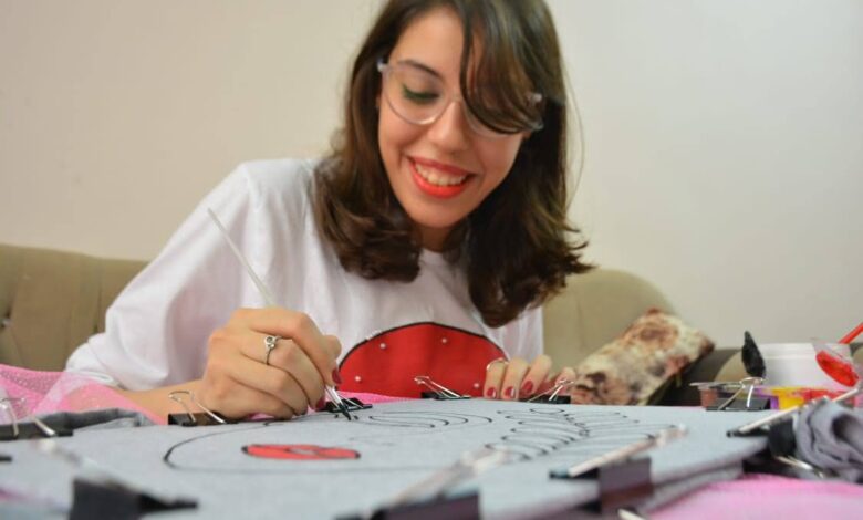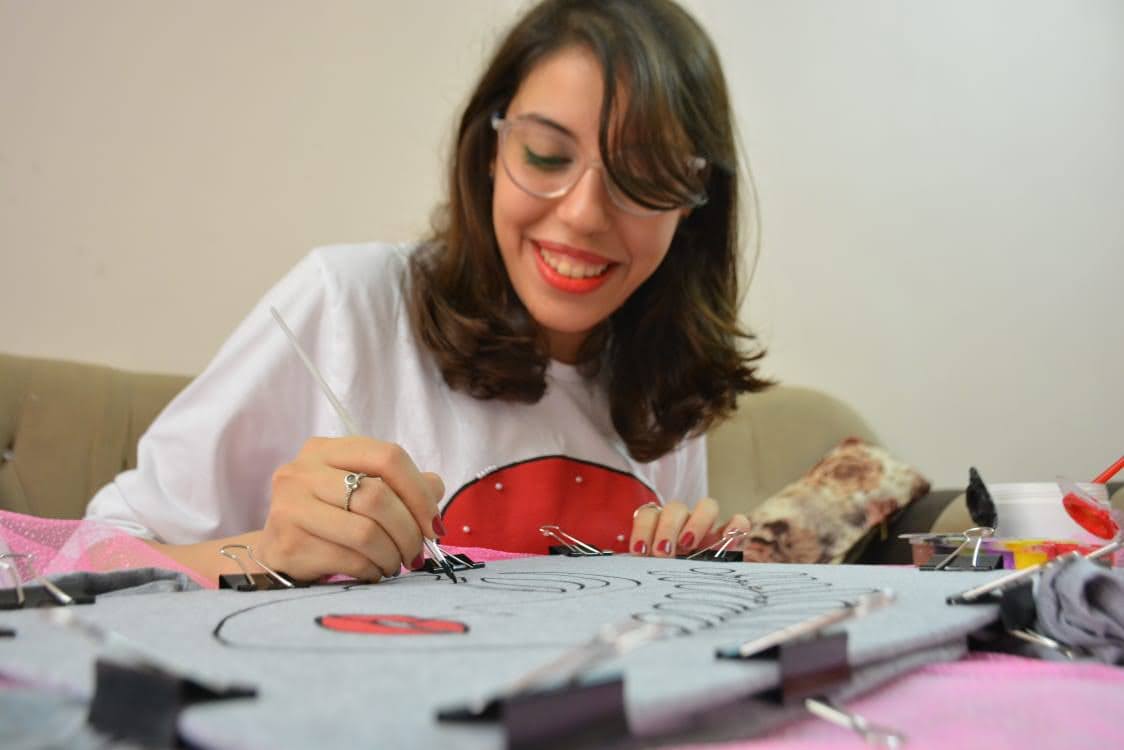 البوم صور:بين الفن والموضة.. هاجر صلاح ترسم ملامح إبداعها على أقمشة الملابس
