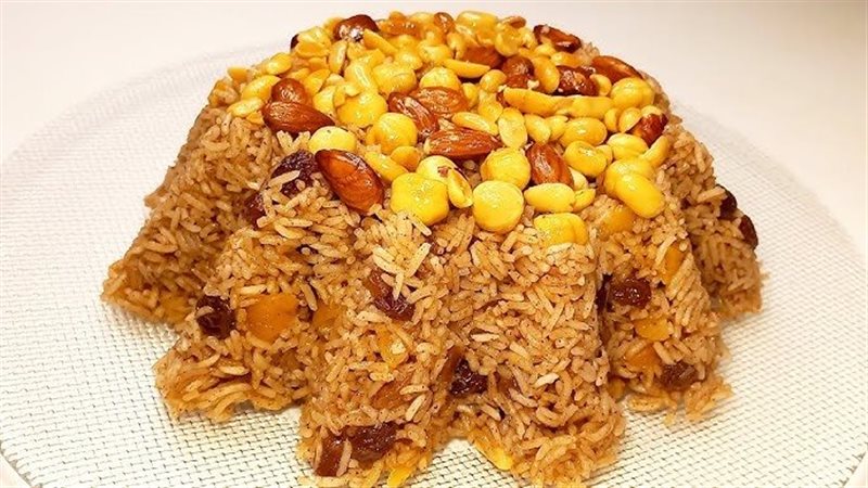 - ولشكل أكثر فخامة، ضعي الأرز في قالب دائري واضغطيه قليلا ثم اقلبيه في طبق التقديم وزيني الوجه بالمكسرات والزبيب.