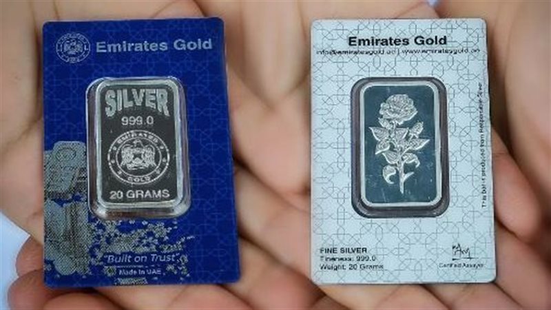 سبيكة الفضة وزن 20 جرام، عيار 999 نحو: 2420 جنيها.