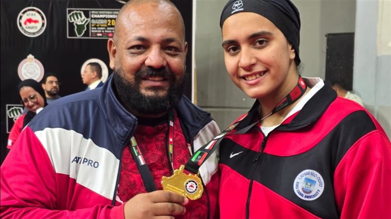 معاني وليد ابنة جامعة قناة السويس تحصد ذهبية شمال إفريقيا في الكاراتيه