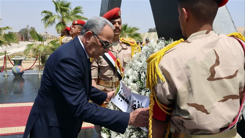 محافظ الإسماعيلية يضع إكليل زهور على النصب التذكاري لشهداء الجيش الثاني الميداني